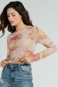 Elevate The Charm Long Sleeve Floral Mesh Crop Top