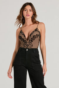 Date Night Muse Plunge V-Neck Velvet Burnout Bodysuit