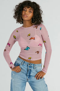 Butterfly Effect Long Sleeve Mesh Crop Top