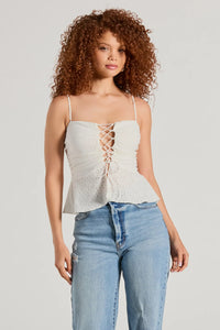 Laced Up Icon Sleeveless Peplum Eyelet Crop Top