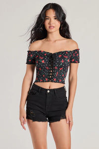 Sweet Like Cherries Lace-Up Off-The-Shoulder Top
