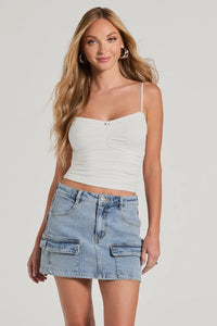 Take on a sweet look in this peplum tank top that everyone will admire! Designed to flatter with a sweetheart neckline, adjustable spaghetti straps for a custom fit, and a stretchy smocked back while the button front and peplum ruffled hem add charming details to this woven fabric. Complete the look in a trendy denim mini skirt for casual plans!