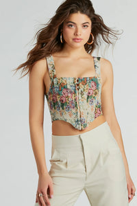 Fairytale Flair Lace-Up Floral Corset Top
