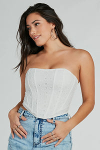 Major Charmer Strapless Eyelet Lace Corset Top