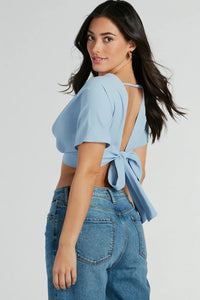 Love So Sweet Off-The-Shoulder Tie Back Crop Top