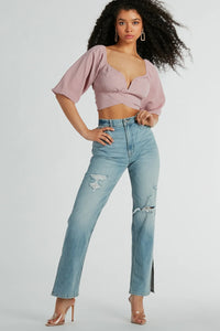 Arrive on the scene looking cute in this floral babydoll crop top perfect for everyday plans! Featuring short sleeves with flirty ruffle trim, a plunging V-neckline, and a babydoll-style silhouette, and a ruffled crop hem and ditsy floral embroidery that adds a touch of charm. Complete the look in high-rise skinny jeans, sandals, and sunnies!