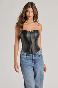 Level up your fashion in this faux leather corset top with a striking satin lace-up back that'll make every head turn!