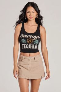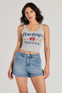 Cowboys And Tequila Sleeveless Graphic Crop Top