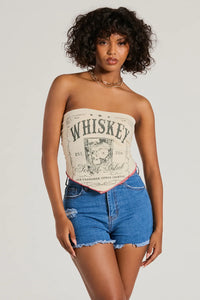 Join the club in this must-have graphic crop top on bar crawls! The strapless neckline and tie-back design provide a flirty touch, while the graphic front and script reads "Whiskey Social Club" adding a bold statement to the cropped hem. Complete the look in denim shorts and cowboy boots!