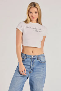 Keep it cheeky in the what would you do without me graphic t-shirt top. With a sassy script and comfy cotton fit, this cropped tee is your new go-to for effortless vibes.