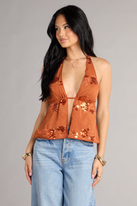 Sunset Glow Sequin Halter Top