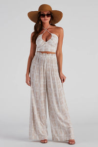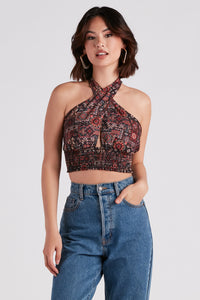 Sultry Boho Print Halter Crop Top
