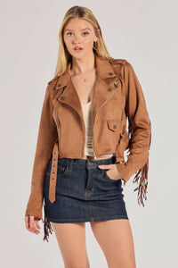 Western Chic Flair Faux Suede Fringe Moto Jacket