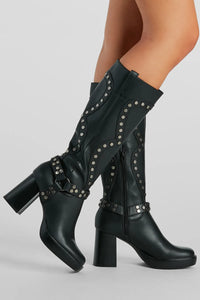 Edgy Attitude Faux Leather Under-The-Knee Boots
