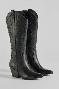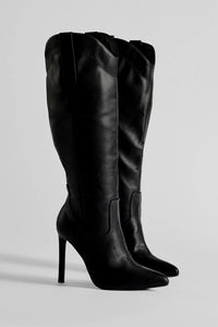 Step up your game this season in these western under-the-knee boots showcasing a sleek stiletto heel to elevate every outfit.