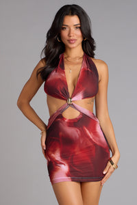 The mini dress that’s destined for the feed—bold print, sleek cutouts, and a body-hugging fit that brings the drama. Trendy, daring, and impossible to scroll past.