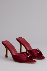 Sultry from heel to toe—these mules bring instant allure with their sleek stiletto shape and chic gold hardware. Perfect for nights when your outfit needs just the right touch of drama.